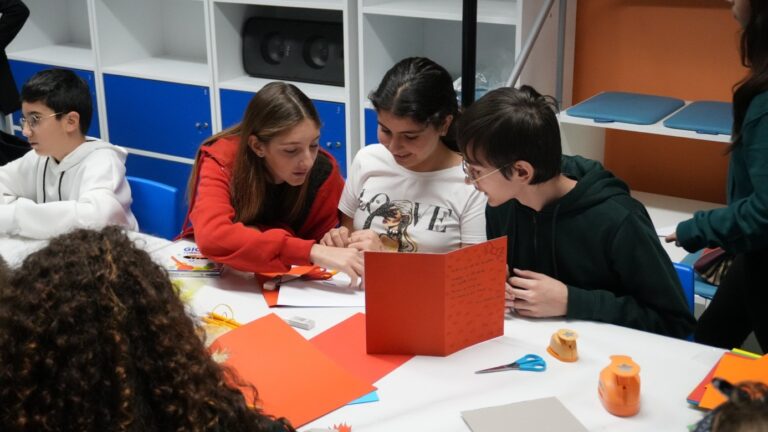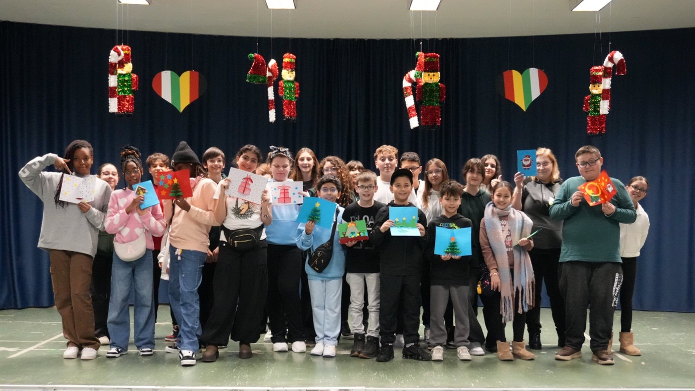 Im Rahmen der daran anschließenden Schulführung lernten unsere Schüler*innen, welche Gemeinsamkeiten und Unterschiede zwischen deutschen und italienischen Schulen bestehen. Beim gemeinsamen Austausch und Fußballspiel mit den italienischen Kindern und Jugendlichen konnten unsere Schüler*innen erstmals neue Kontakte knüpfen und ihre Englischkenntnisse erweitern. Nach einem gemeinsamen Essen bastelten alle Schüler*innen in einem Workshop gemeinsam Weihnachtskarten.