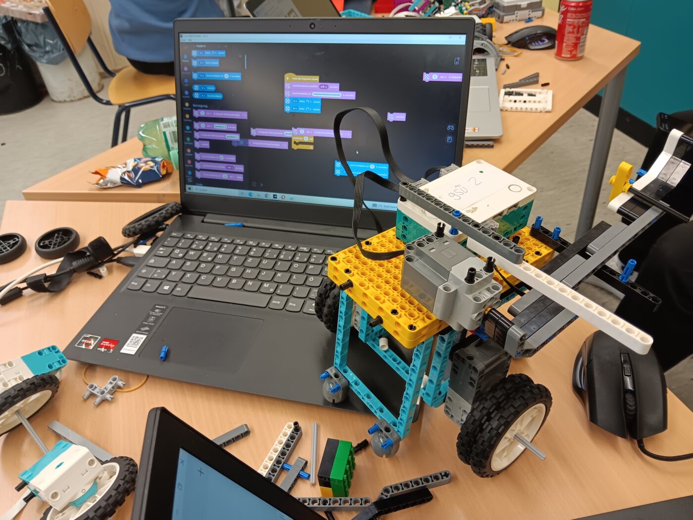 Dabei gab es vier Wettbewerbe, in denen die Schülerinnen und Schüler gegeneinander antraten: am Donnerstag den 20.11. stand die Konstruktion einer Roboterhand auf dem Programm. Diese sollte in 60 Sekunden so viele Legosteine wie möglich aus einer Kiste holen. Nach sieben Stunden voller Entwürfen, Verbesserungen, Programmanpassungen und so manchem Fluch oder Jubelschrei kristallisierte sich der Sieger heraus: in 60 Sekunden holte der Roboter ganze 69 Legosteine aus der Kiste – ein großartiges Ergebnis.